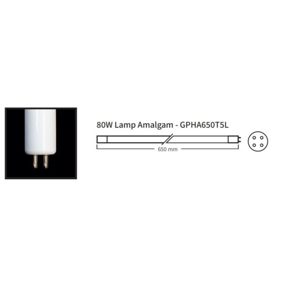 De 80 watt amalgaam UV-C lamp is een krachtige en duurzame vervangingslamp voor diverse dompelbare UV-C systemen, waaronder modellen van Xclear, Aquaforte en VGE. De lamp heeft een lengte van 65 cm en is geschikt voor vele andere merken, mits de voet en lengte overeenkomen.