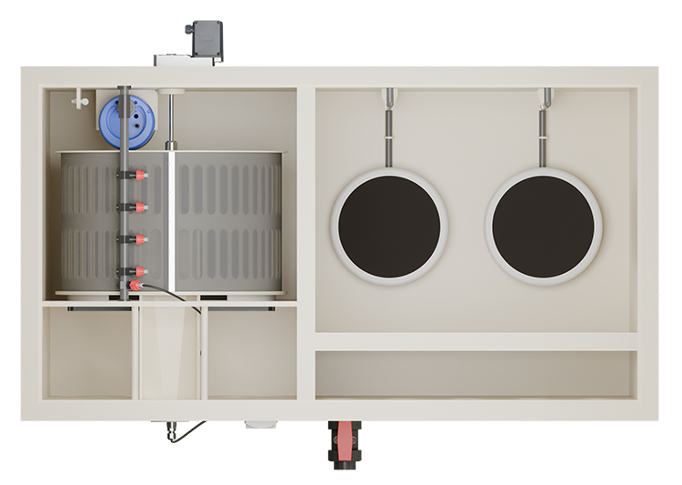 De geïntegreerde spoelpomp zorgt voor automatische reiniging van het drumfilter en minimaliseert de onderhoudsbehoeften. Het systeem is bovendien uitgerust met een dubbel borstelsysteem, dat ervoor zorgt dat de vuilafvoergoot schoon blijft en de efficiëntie van het filtersysteem wordt geoptimaliseerd.