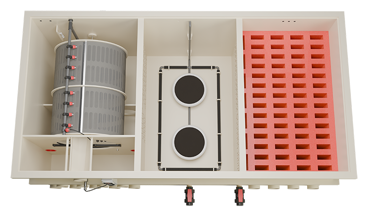 De royale afmetingen en grote filterkamers bieden uitzonderlijk veel ruimte voor mechanische en biologische filtratie.