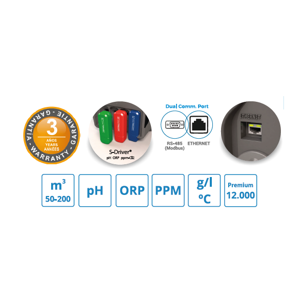 • Modulair uitbreidbaar met plug-in modules voor pH, ORP, vrij chloor (PPM) en VSP-pompen