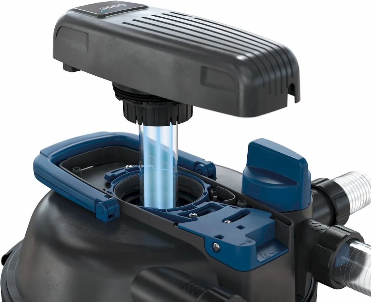 De vervanging van de UV-C lamp is bij dit model extra handig gemaakt. Je verwijdert de volledige UV-unit aan de bovenzijde, zónder het kwetsbare kwartsglas los te maken. Hierdoor blijft het glas veilig en het filter zelfs actief terwijl je de lamp vervangt. Een slimme oplossing die tijd én moeite bespaart.