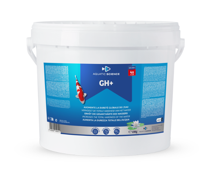 Aquatic Science GH+ 15 kg is een professioneel mineraalmengsel dat de totale hardheid (GH) van het vijverwater verhoogt en stabiliseert. Regenval en verdamping kunnen de GH-waarde verlagen, wat nadelig is voor de biologische filtratie, plantengroei en visgezondheid. GH+ corrigeert dit snel en versterkt het biologisch evenwicht dankzij zijn natuurlijke, mineraalrijke samenstelling.