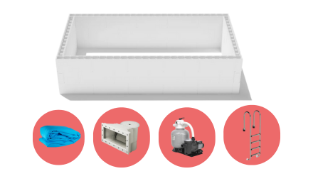 Wil je zelf een zwembad bouwen? Met dit complete High Density polystyreen bouwpakket van 7 x 3,5 x 1,5 m heb je alles in huis voor een solide inbouwzwembad.