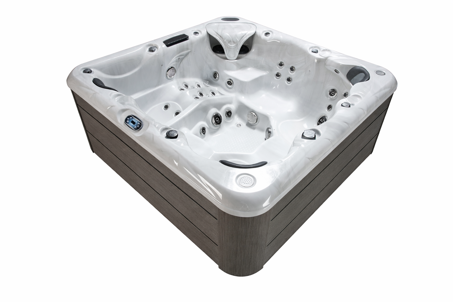 Elke spa wordt standaard geleverd met gratis trapje, cover en coverlift. De binnenkuip kan nog worden aangepast in één van de volgende Aristech Acryl‑kleuren: Pure White, Pearl White, Cloudy White, Cloudy Black. De buitenzijde kent een luxe, duurzame afwerking die past in hoogwaardige wellnessomgevingen. De combinatie van ruime zit‑ en ligmogelijkheden, hoogwaardige filtratie met twee filters, ozonsysteem, en extra’s zoals wifi‑optie en Bluetooth‑speakers maken dit model geschikt voor intensief gebruik met een premium uitstraling.