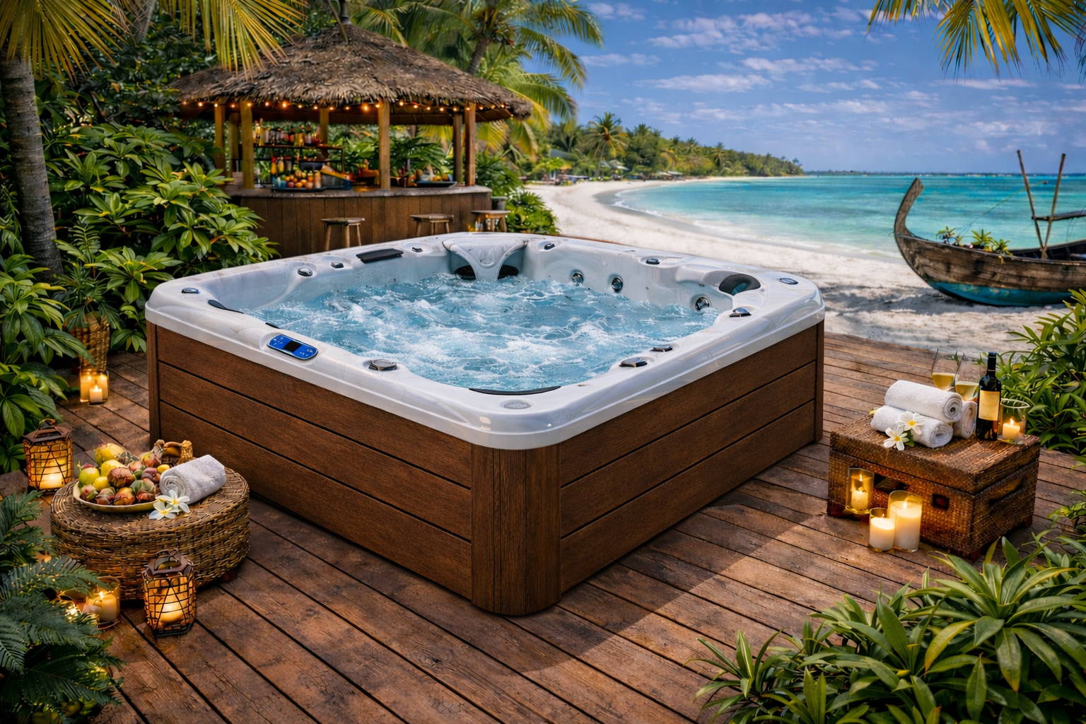De Infinity Spa 003 is een hoogwaardige outdoor wellness spa die luxe, capaciteit en prestaties samenbrengt. Met zijn royale afmetingen van 2400 × 2400 × 960 mm en maar liefst 6 comfortabele zitplaatsen is deze spa ideaal voor intensief particulier gebruik, wellnesslocaties en high-end verhuur.