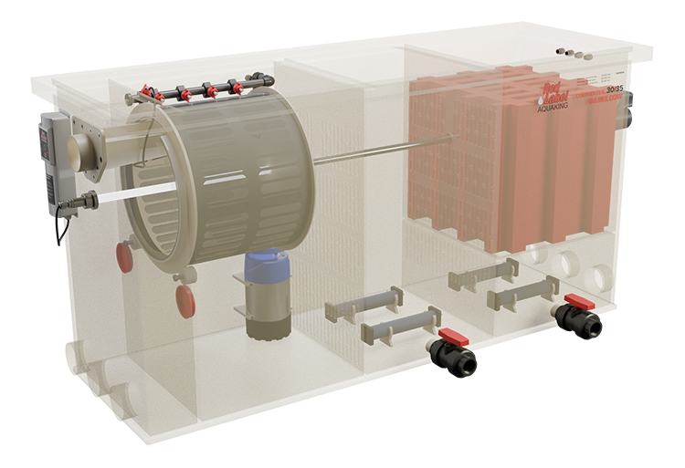 De Inline Combi 30/35 Filter Red Label is voorzien van een gepatenteerd afdichtingssysteem dat UV-schade voorkomt en de levensduur van het trommelfilter verlengt. Daarnaast beschikt het systeem over laagwaterbeveiliging voor extra veiligheid tijdens gebruik.