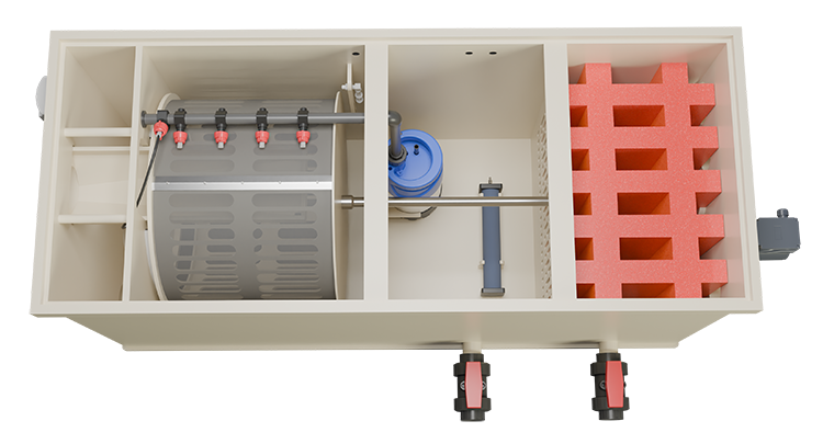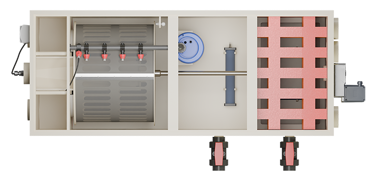 Het trommelfilter is voorzien van een 120 micron trommelscherm, waarmee fijn vuil en zwevende deeltjes effectief uit het vijverwater worden verwijderd.