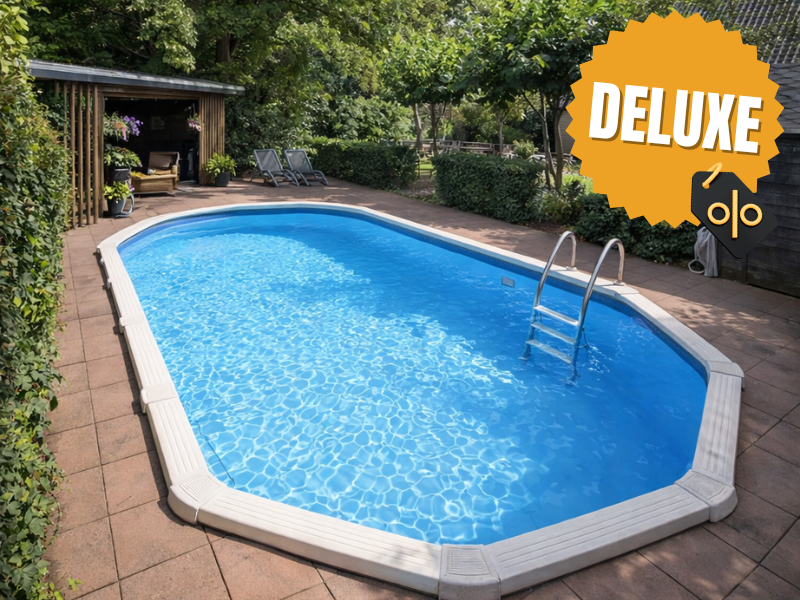 Het Deluxe pakket bevat daarnaast een Fiberclean filterset met zelfaanzuigende pomp, een skimmer, een inlaatfitting, een zwembadkoof en een kunststof A-frame ladder voor opbouw- en inbouwzwembaden. Hiermee beschikt u direct over een complete basis voor gebruiksgemak, filtering en een nette afwerking van het zwembad.