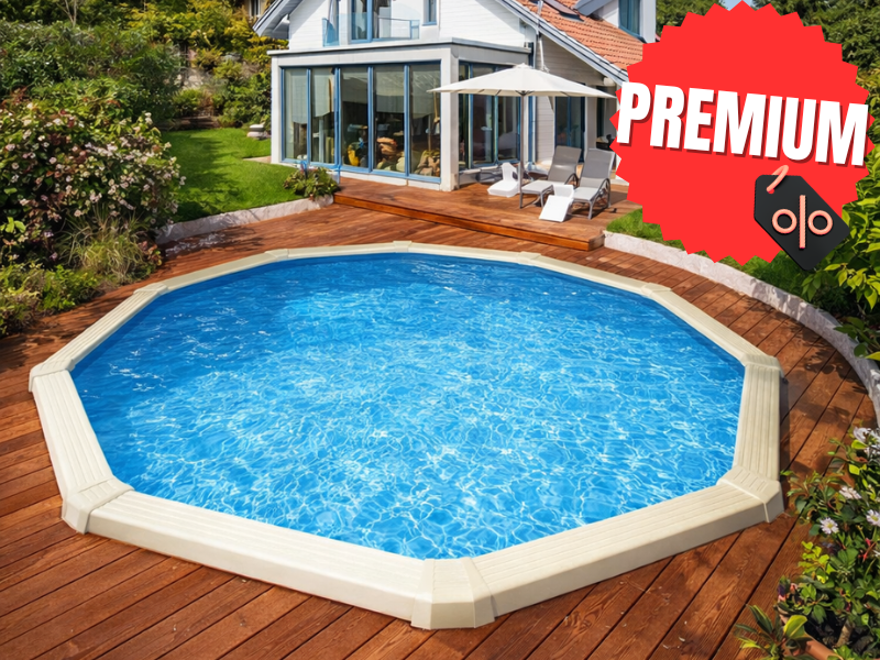 De ronde vorm maakt dit zwembad bijzonder geschikt voor gezinnen die een compact maar comfortabel model zoeken met een luxe uitstraling.