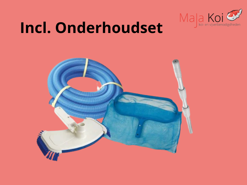 Het Premium pakket wordt zeer compleet geleverd en bevat naast het zwembad ook een Fiberclean filterset met zelfaanzuigende pomp, liner, skimmer, inlaatfitting, zwembadkoof, ondertapijt, kunststof A-frame ladder voor op- en inbouwzwembaden, zomerafdekking, winterafdekking en een onderhoudsset. Hiermee beschikt u direct over een complete totaaloplossing voor schoon, helder en goed beschermd zwembadwater.