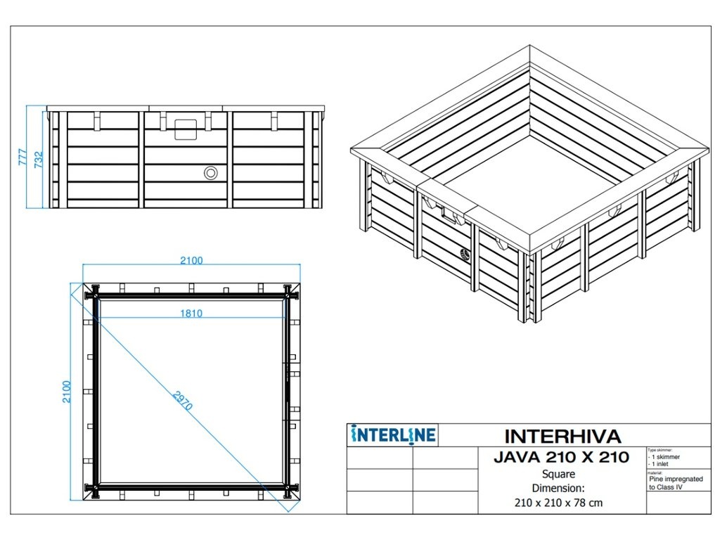 ✔ Interline Java houten zwembad – 2,10 × 2,10 m, hoogte 78 cm