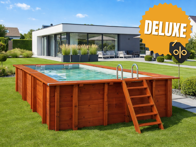 Het Interline Sumatra rechthoek zwembad 6,00 × 3,00 m Deluxe pakket is een luxe en royaal houten zwembad dat perfect geschikt is voor grotere tuinen. Dankzij de rechthoekige vorm profiteert u van een strakke, moderne uitstraling en maximale zwemruimte. Dit maakt het zwembad ideaal voor wie comfortabel wil zwemmen, ontspannen en afkoelen in de eigen tuin.