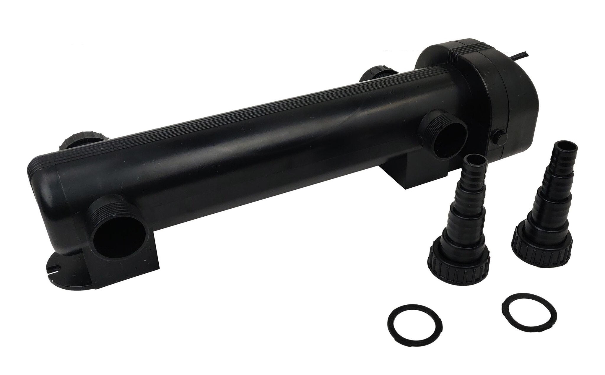 Het systeem is ontworpen voor eenvoudige integratie in bestaande vijverinstallaties. De meegleverde slangpilaren passen op verschillende slangdiameters (20, 25, 32 en 40 mm), waardoor aansluiting moeiteloos verloopt. De robuuste behuizing garandeert langdurige bescherming tegen weersinvloeden en zorgt voor veilig gebruik zonder lekkage van UV-straling.