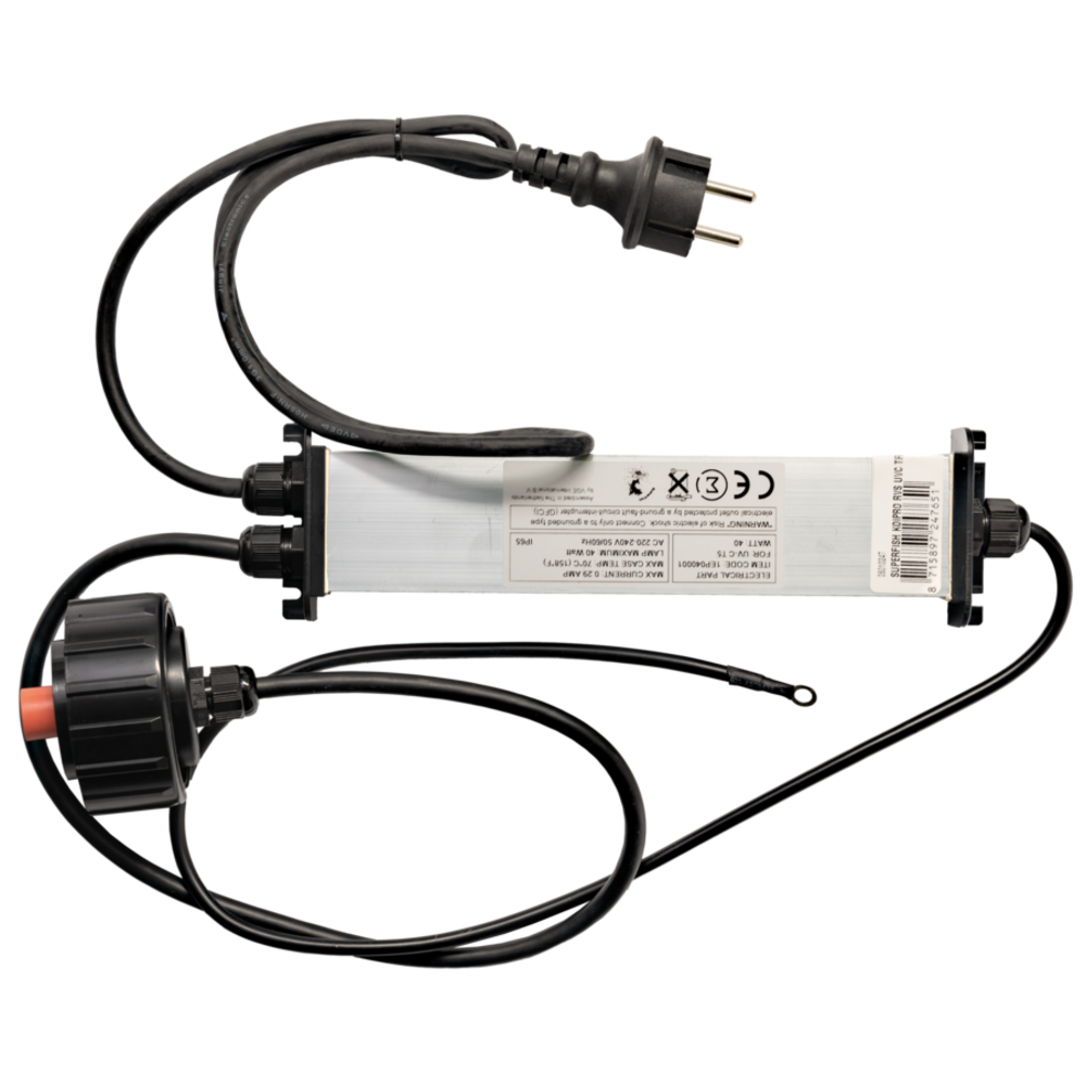 De KP RVS UV Trafo T5 40W – 2015 is ontwikkeld als een betrouwbare en duurzame voedingseenheid voor UV-C systemen die ingezet worden binnen vijver- en waterzuiveringsinstallaties. Deze transformator vormt een kritische schakel in het totale zuiveringsproces, waarbij een stabiele en veilige stroomvoorziening essentieel is voor een consequente werking van de UV-lamp. Door een gecontroleerde en constante uitgangsspanning te leveren, ondersteunt de trafo de UV-lamp in het genereren van een optimale lichtintensiteit, wat direct bijdraagt aan een efficiënte reductie van micro-organismen, zweefalgen en schadelijke bacteriën in het water.