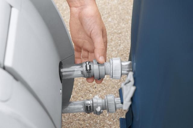 De ingebouwde Wi-Fi-module maakt bediening via de Bestway Smart Hub-app eenvoudig, zodat je temperatuur, timer en filterinstellingen op afstand kunt regelen. Dankzij Freeze Shield™ wordt het water automatisch verwarmd bij temperaturen onder de 4°C, waardoor de spa ook in de winter veilig te gebruiken is.