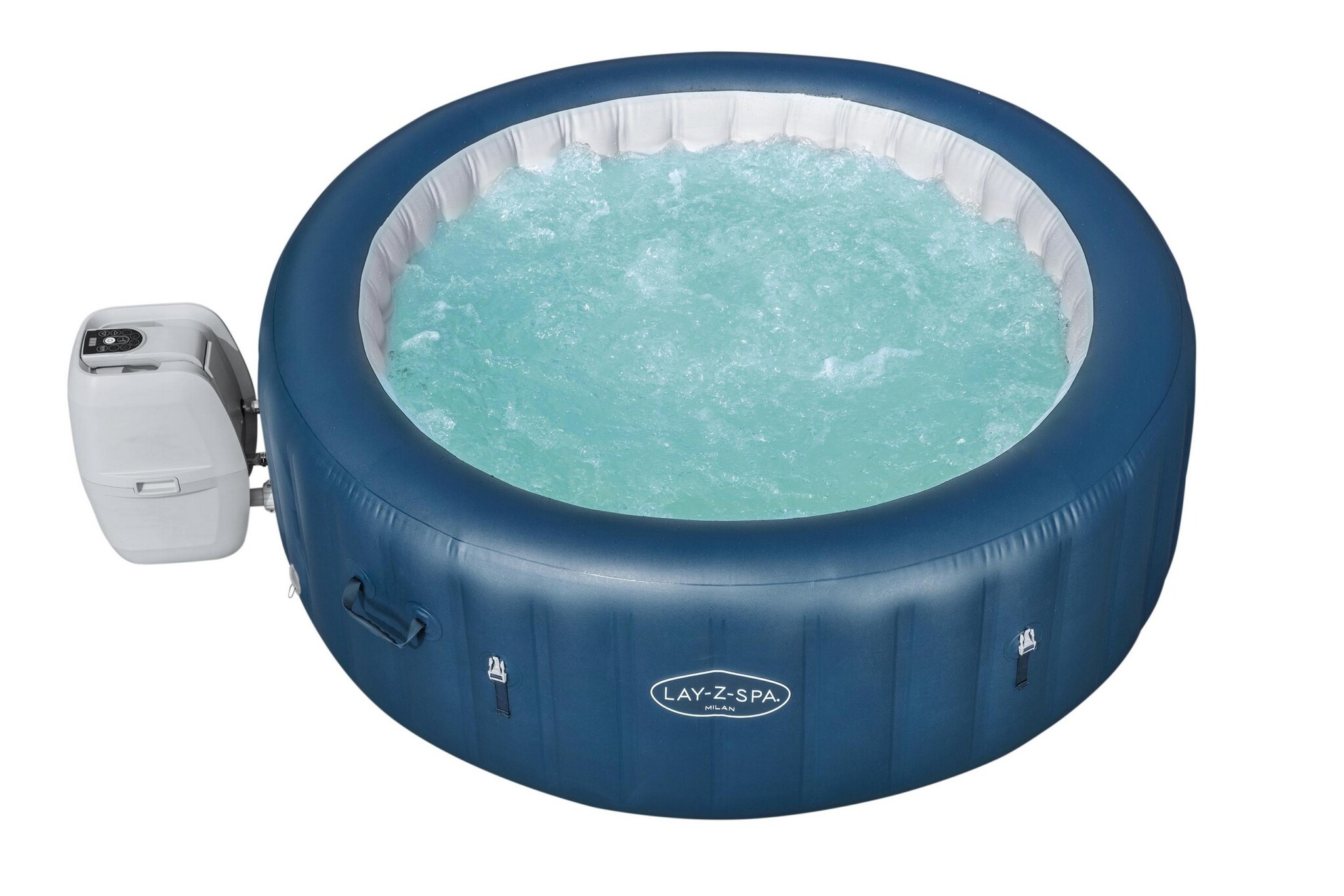 De Lay-Z-Spa Milan Plus biedt een luxe spa-ervaring voor 4 tot 6 personen in een stijlvol rond ontwerp. Met een inhoud van 916 liter en 140 AirJets Plus geniet je van een massage voor zowel rug als voeten dankzij extra bubbelopeningen op de bodem.