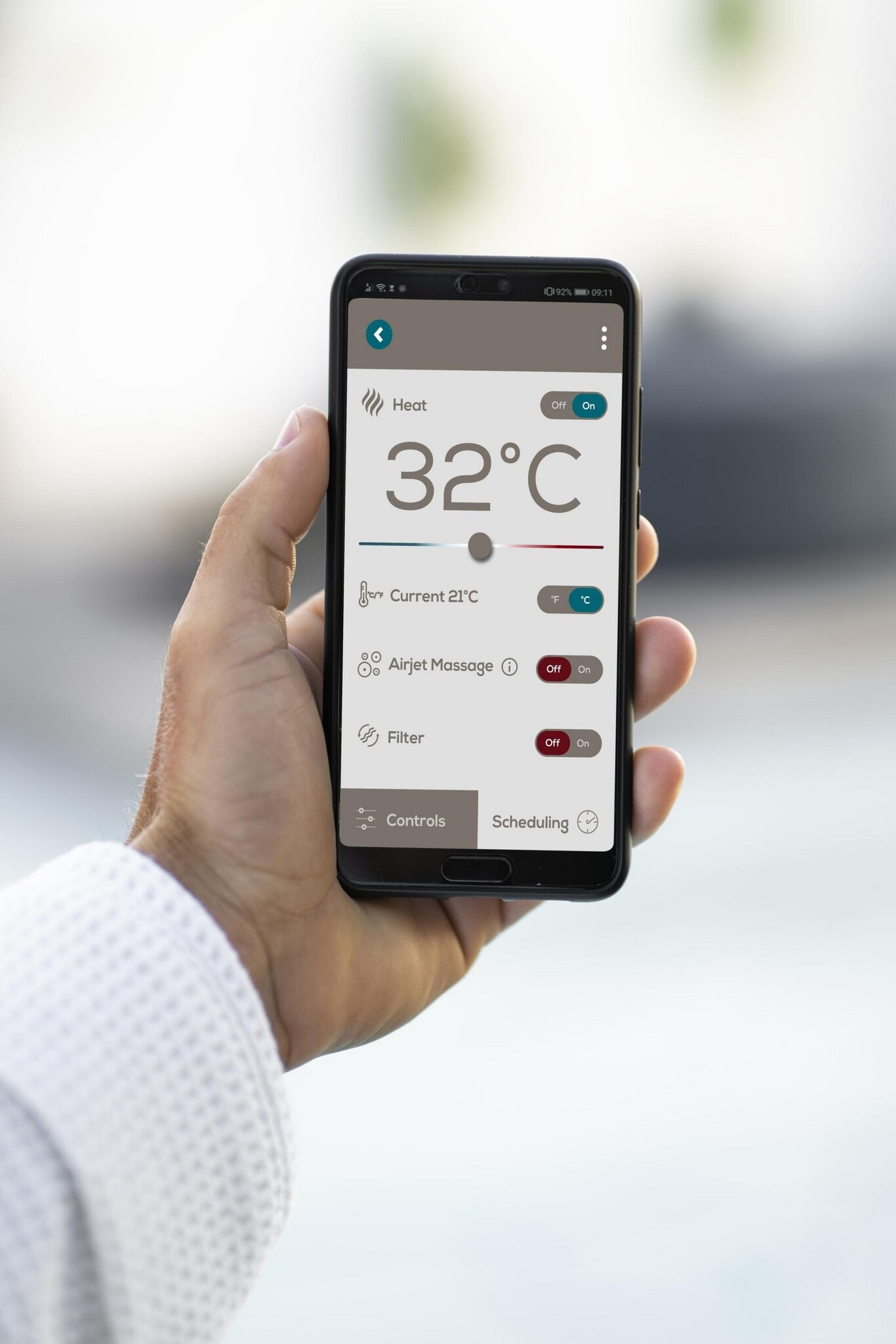 Het digitale controlepaneel en de pomp met geïntegreerd filtersysteem en bekerhouders maken bediening en onderhoud eenvoudig. De verwarming is tot 40 dagen vooruit te programmeren en optimaliseert energieverbruik.