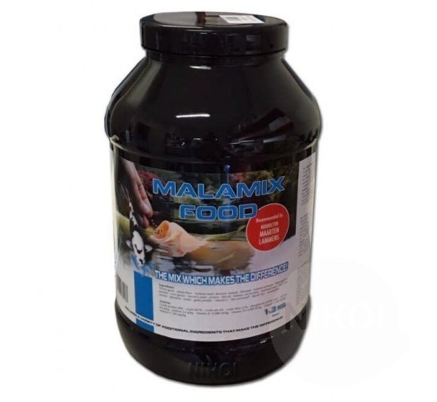 Malamix Food 1,3 kg is een premium koivoer ontwikkeld door koidokter Maarten Lammens en gericht op maximale gezondheid, groei en weerstand van koi en vijvervissen. De uitgebalanceerde samenstelling bevat hoogwaardige ingrediënten zoals spirulina, astaxanthine, aloë vera en vitamines, die bijdragen aan een sterke immuniteit en levendige kleuren.