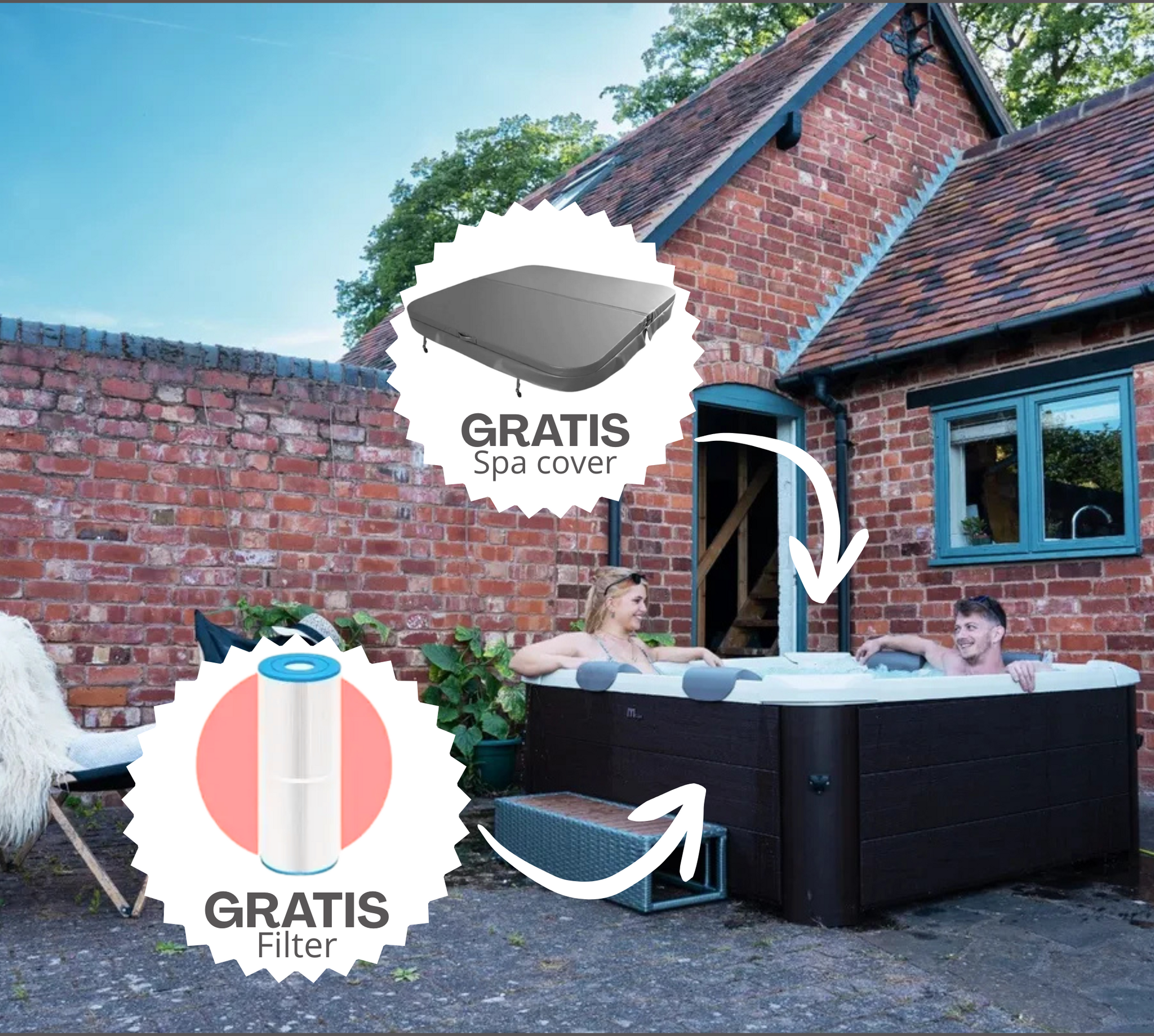 - Chloordispenser en een spa cover voor onderhoudsgemak.