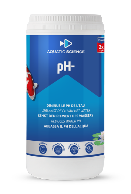 PH- 1 kg van Aquatic Science is een krachtige en gecontroleerde pH-verlager voor vijvers en zwemvijvers. Wanneer de pH boven 8,2 uitkomt, kan de waterhardheid (GH/KH) moeilijk worden aangepast door neerslagvorming. Deze behandeling corrigeert de pH snel, zodat de mineraalbalans hersteld kan worden en producten zoals GH+, KH+ en Optiminera opnieuw effectief hun werk kunnen doen.