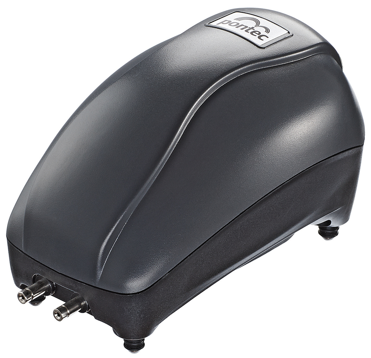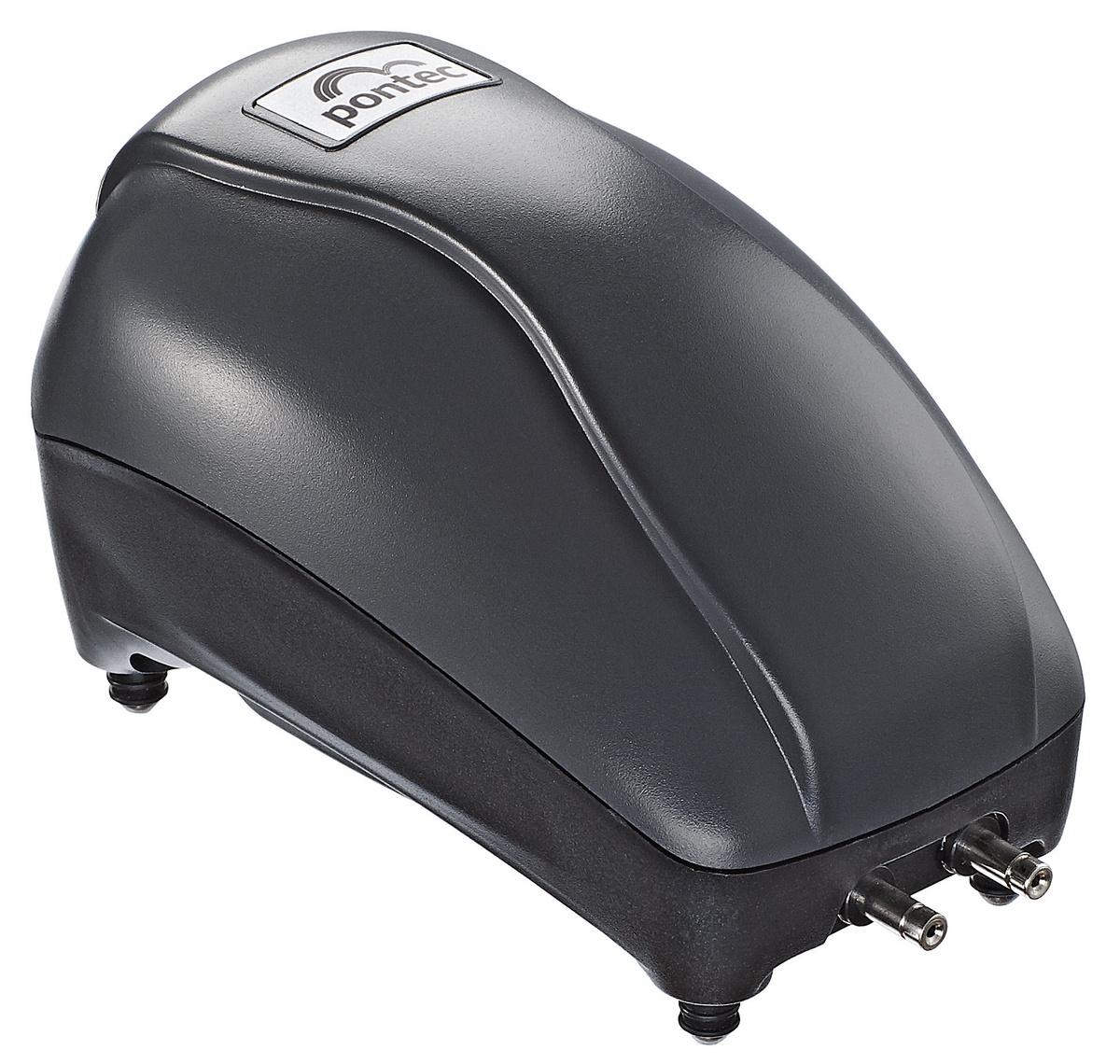 De spatwaterdichte behuizing (IP44) maakt de pomp geschikt voor gebruik in de tuin, dicht bij de vijver. De stille membraanpomp werkt betrouwbaar en is eenvoudig in gebruik. De set is compleet en klaar voor gebruik, inclusief twee luchtslangen van elk 5 meter, twee luchtstenen en een 1,5 meter lange rubberen stroomkabel.