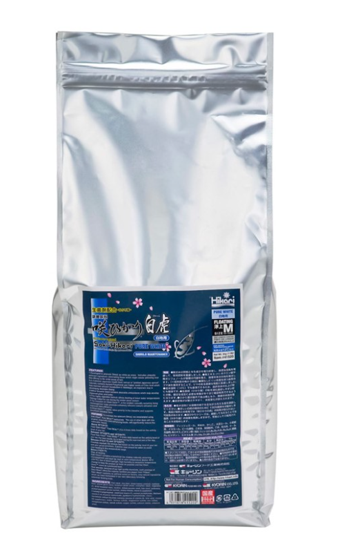 De kracht van Saki-Hikari Pure White ligt in de gerichte ondersteuning van de witte kleurontwikkeling van koi. Deze voeding is ontwikkeld voor vijverliefhebbers die veel waarde hechten aan een heldere, schone en opvallende witte uitstraling bij hun vissen. Daarmee is dit voer bijzonder geschikt voor koi waarbij het behoud van sterke witte tinten een belangrijk onderdeel is van de totale presentatie.