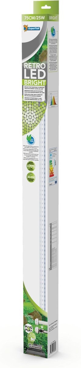 De SF Retro LED Bright is een energiezuinige LED-lamp van 150 cm en 58 watt, speciaal ontwikkeld voor het vervangen van traditionele T8- en T5-verlichting in aquariums. Deze lamp biedt een efficiënte en duurzame lichtoplossing met een hoge lichtopbrengst en een laag energieverbruik.
