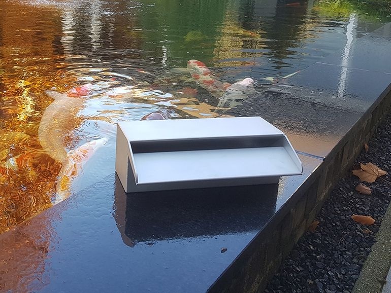De waterval kan worden aangesloten op diverse vijverpompen en filtersystemen. Voor het beste resultaat wordt een pomp geadviseerd met voldoende literopbrengst om een volle, strakke waterfilm te creëren.