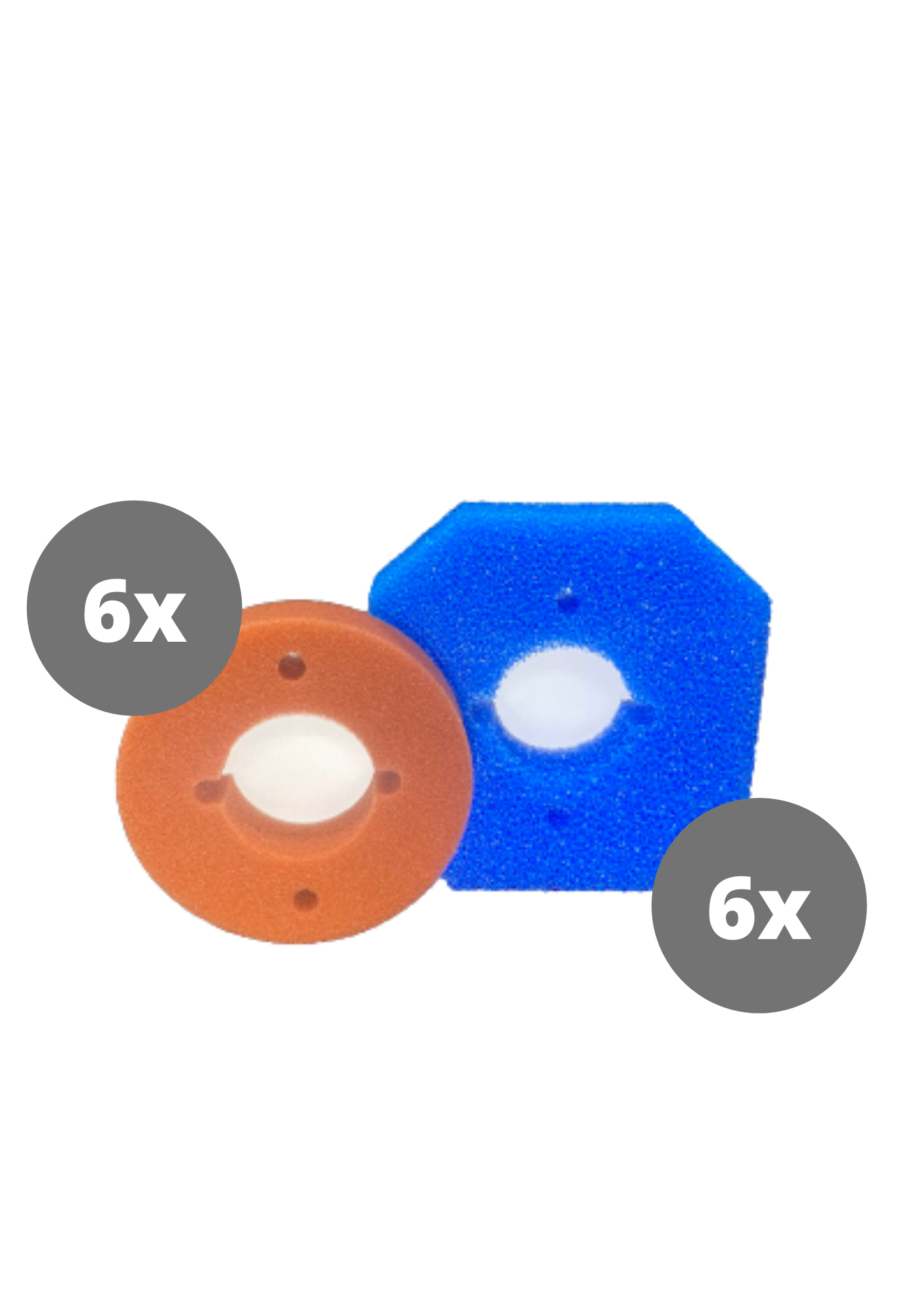 Complete Set voor Optimale Filtratie: Bestaande uit 6 stuks middel blauw en 6 stuks fijn rood filterschuim, biedt deze set een geavanceerde gelaagde filtratie. Het middelblauwe schuim vangt moeiteloos middelgrote deeltjes op, terwijl het fijne rode schuim zich richt op kleinere verontreinigingen.