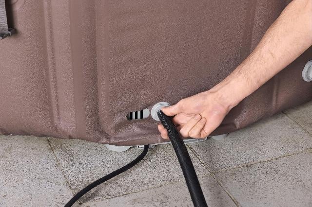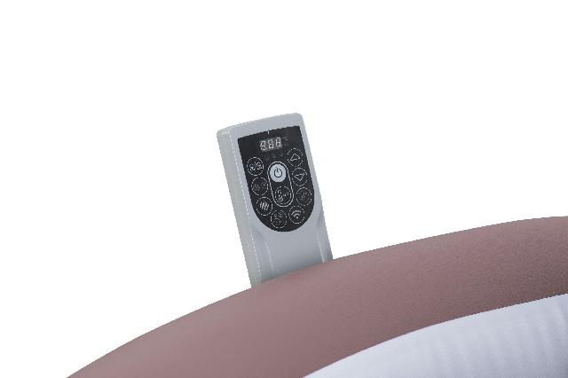 De geïntegreerde UltraFit-pomp is ruimtebesparend in de wand verwerkt en digitaal geregeld. Deze pomp verzorgt het opblazen, de filtratie en de bediening van het massagesysteem en is eenvoudig toegankelijk en uitneembaar voor onderhoud. Via de Bestway Smart Hub-app kan de spa volledig worden bediend: temperatuur, timer, filtratie en massagefuncties zijn met één druk op de knop aan te passen. De ingebouwde Wi-Fi-module maakt dit slimme gebruiksgemak mogelijk.