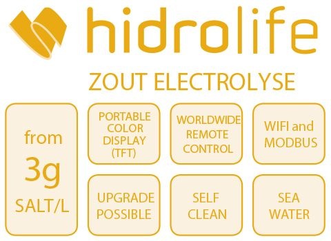 In licht gezouten water (>3 gr NaCl/liter) wordt ter plaatse automatisch natrium hypochloriet gemaakt voor waterdesinfectie. Het toevoegen van chloor wordt hierdoor voor 100% overbodig. Zoutconcentratie mogelijk van 3 tot 100 gram NaCl/liter. Natrium hypochloriet desinfecteert het water en verwijdert nare luchtjes van gebonden chloor (cloramines).
