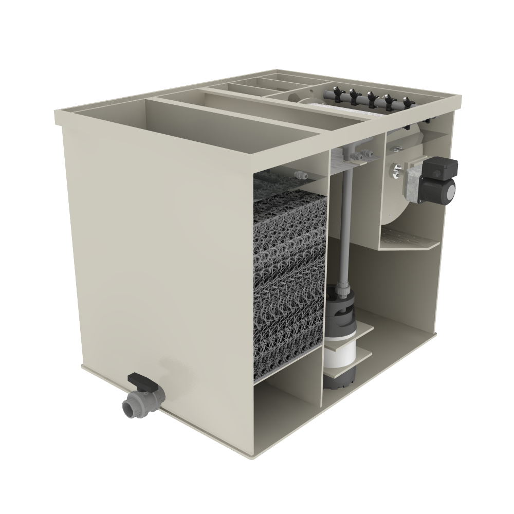 De Combi Drum 25/30 Trommelfilter Gravity is een compact en onderhoudsarm filtersysteem, speciaal ontworpen voor kleinere koi- en siervijvers. Het combineert een volautomatische trommelfilter voor mechanische vuilafvang met een biologisch filtergedeelte voor een stabiele waterkwaliteit. Dankzij de efficiënte werking en het compacte ontwerp is dit model ideaal voor vijvers tot circa 35 m³, ook bij beperkte inbouwruimte.