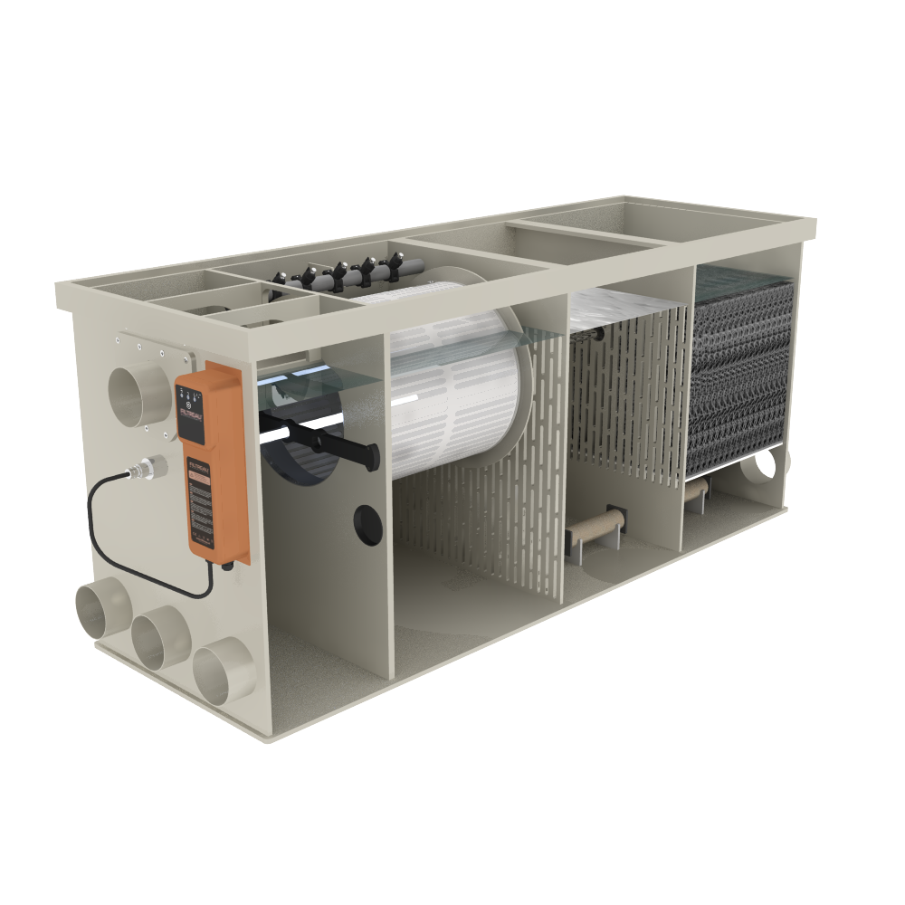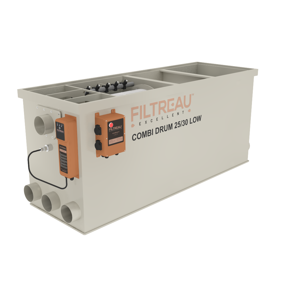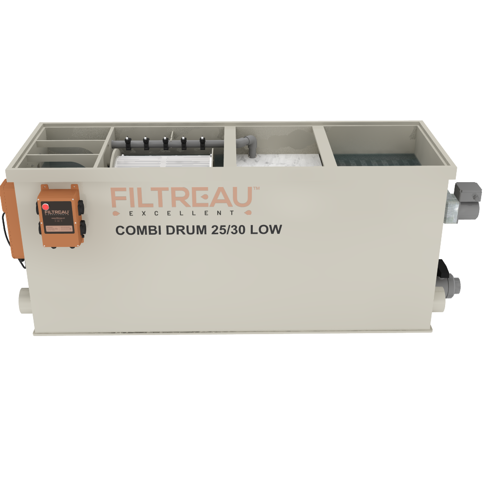 De Combi Drum 25/30 Low In Line Gravity is het compacte instapmodel binnen de In Line-serie. Dankzij de lage bouwhoogte is dit filter ideaal voor vijvers waar de inbouwruimte beperkt is. Het systeem combineert een volautomatische trommelfilter met een biologisch filtergedeelte in rechte doorstroming (In Line). Hierdoor ontstaat een efficiënte waterstroom met minimale weerstand, terwijl zowel vuildeeltjes als schadelijke stoffen betrouwbaar uit het vijverwater worden verwijderd.