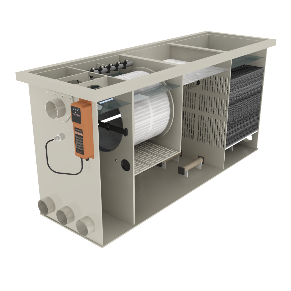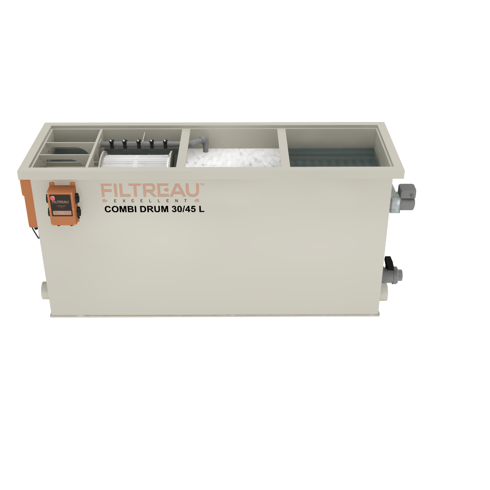 De Combi Drum 30/45 L In Line is een compacte en lage uitvoering binnen de In Line-serie. Dankzij zijn lagere bouwhoogte is dit model ideaal voor vijversituaties met beperkte inbouwruimte. Het systeem combineert de kracht van een automatische trommelfilter met een biologisch filtergedeelte in rechte doorstroming (In Line-constructie). Hierdoor blijft het water helder, stabiel en gezond met minimale onderhoudsinspanning.