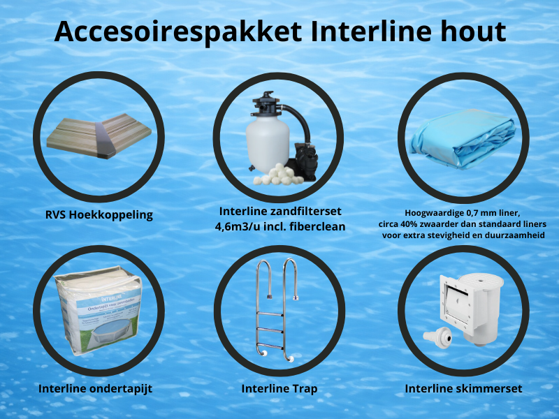 Met het Interline Bali Deluxe pakket kies je voor een compleet houten zwembad inclusief extra accessoires voor maximaal gemak en comfort. In dit uitgebreide pakket ontvang je naast het zwembad ook een zelfaanzuigende filterinstallatie met Fiberclean, skimmer en inlaatfitting, ondertapijt, luxe RVS-hoekverbindingen én zowel een zomer- als winterafdekking. Zo heb je direct alles in huis om optimaal van je zwembad te genieten én het goed te onderhouden.