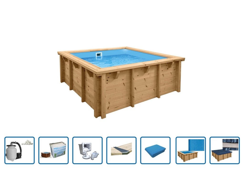 De houten zwembaden van Interline zijn gemaakt van hoogwaardig “Nordic Pine” hout met klasse 4 impregnatie. Dit sterke hout is speciaal behandeld om bestand te zijn tegen vocht, weersinvloeden en langdurig buitengebruik. Hierdoor blijft het zwembad jarenlang in uitstekende conditie en kun je rekenen op langdurig zwemplezier in je eigen tuin.